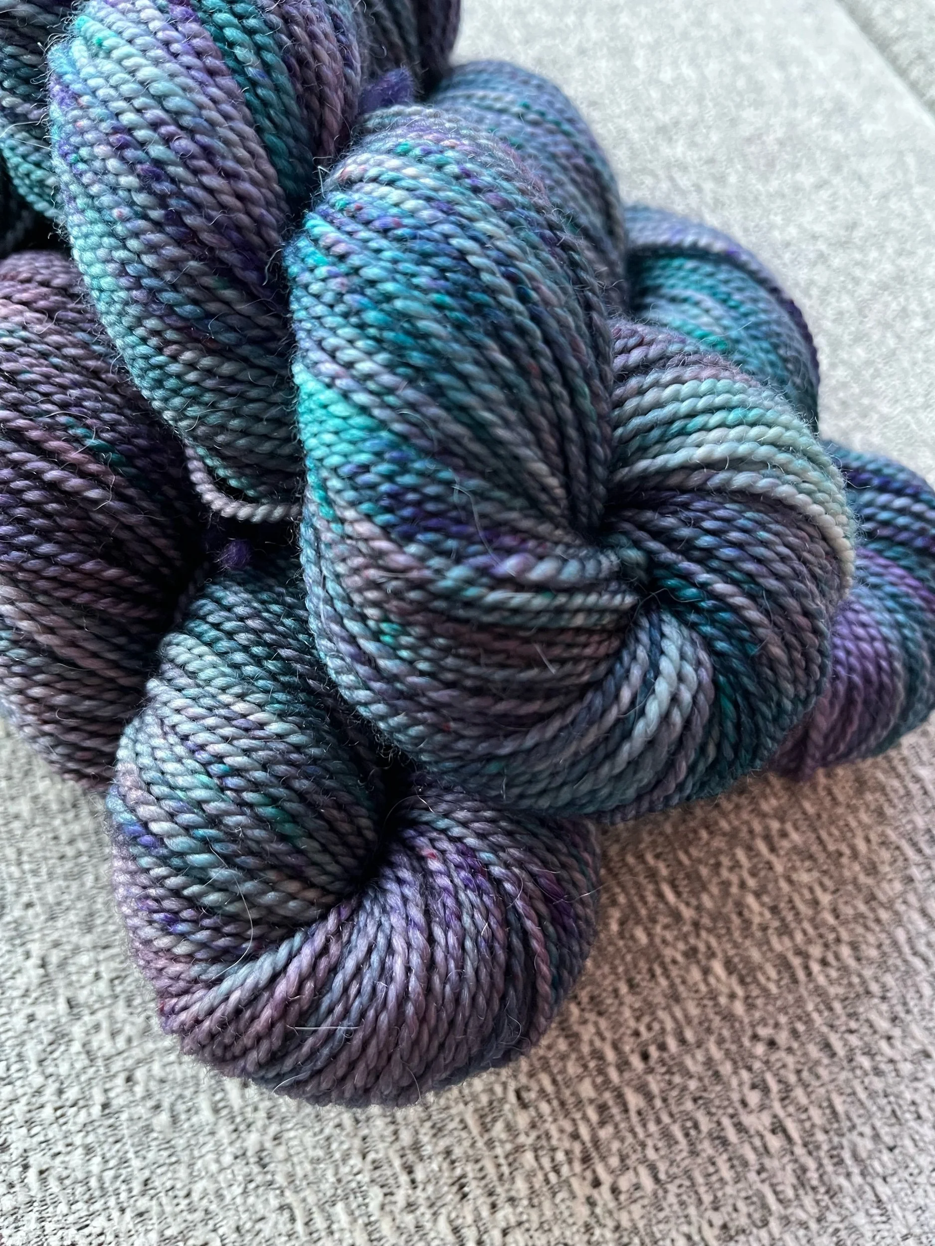 This batch of Arwen turned out a little on the light and airy side of things in terms of color saturation so I am offering these up at a nice discount. I have nine beautiful skeins of this colorway all from the same batch. The colors are bright and gorgeous.